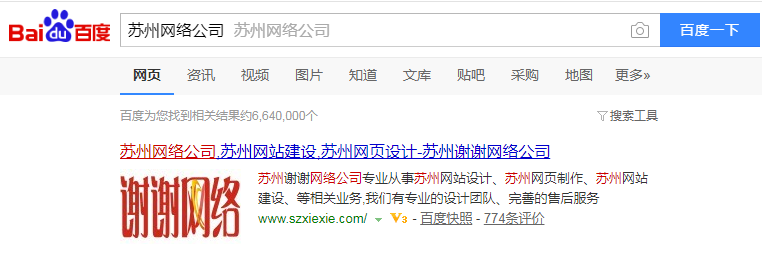 如圖 百度搜索“蘇州網絡公司”結果